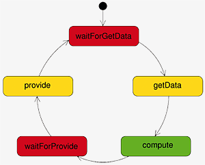 Die Zustände getData, compute und provide aus Abbildung E2.3 werden durch das DeepActor-