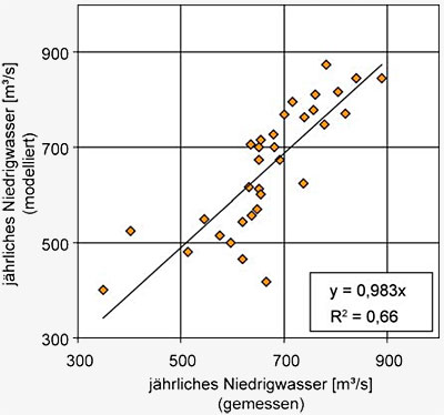 Modell noch nicht implementiert. Abbildung E4.6 zeigt die jährlichen Niedrigwasserabflüsse am