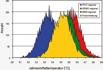 Häufigkeitsverteilungen der mittleren Jahrestemperaturen